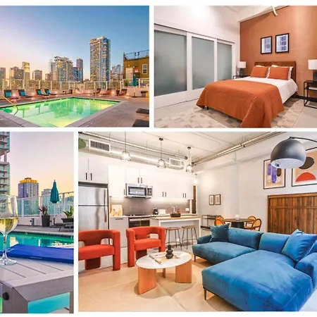 アパートはステイプルズ・センター数歩の距離で、Hill & 11thバス停から50メートルです。 Stunning 1 Bdr 1 Bth Modern Loft With Pool, Jacuzzi In Dtla!アパートメントから徒歩でたった8分のところにオーフィウム劇場があります。 ウォルト・ディズニー・コンサートホールから2.1kmの距離にあります。